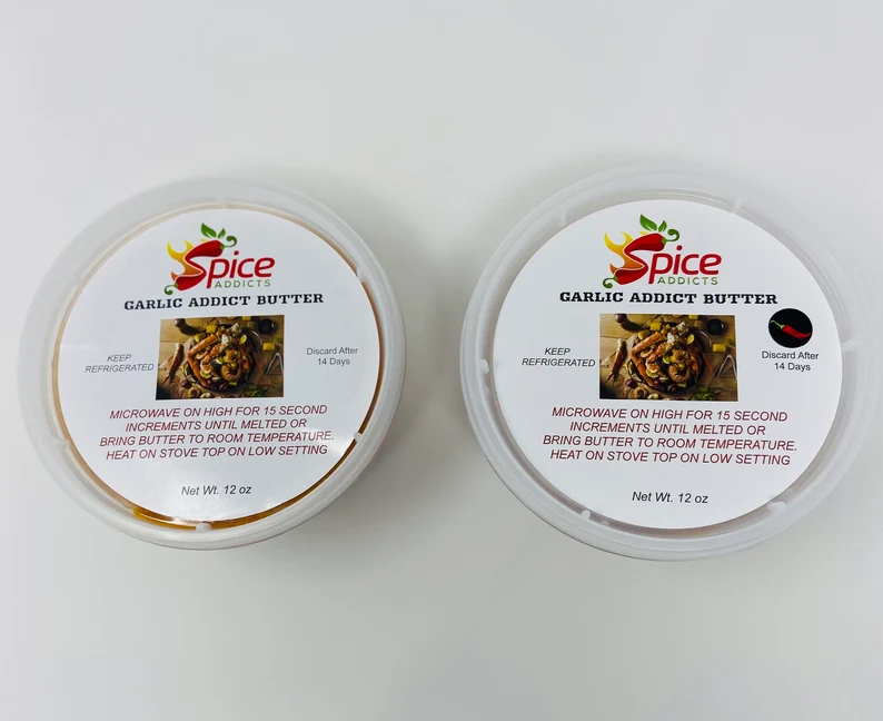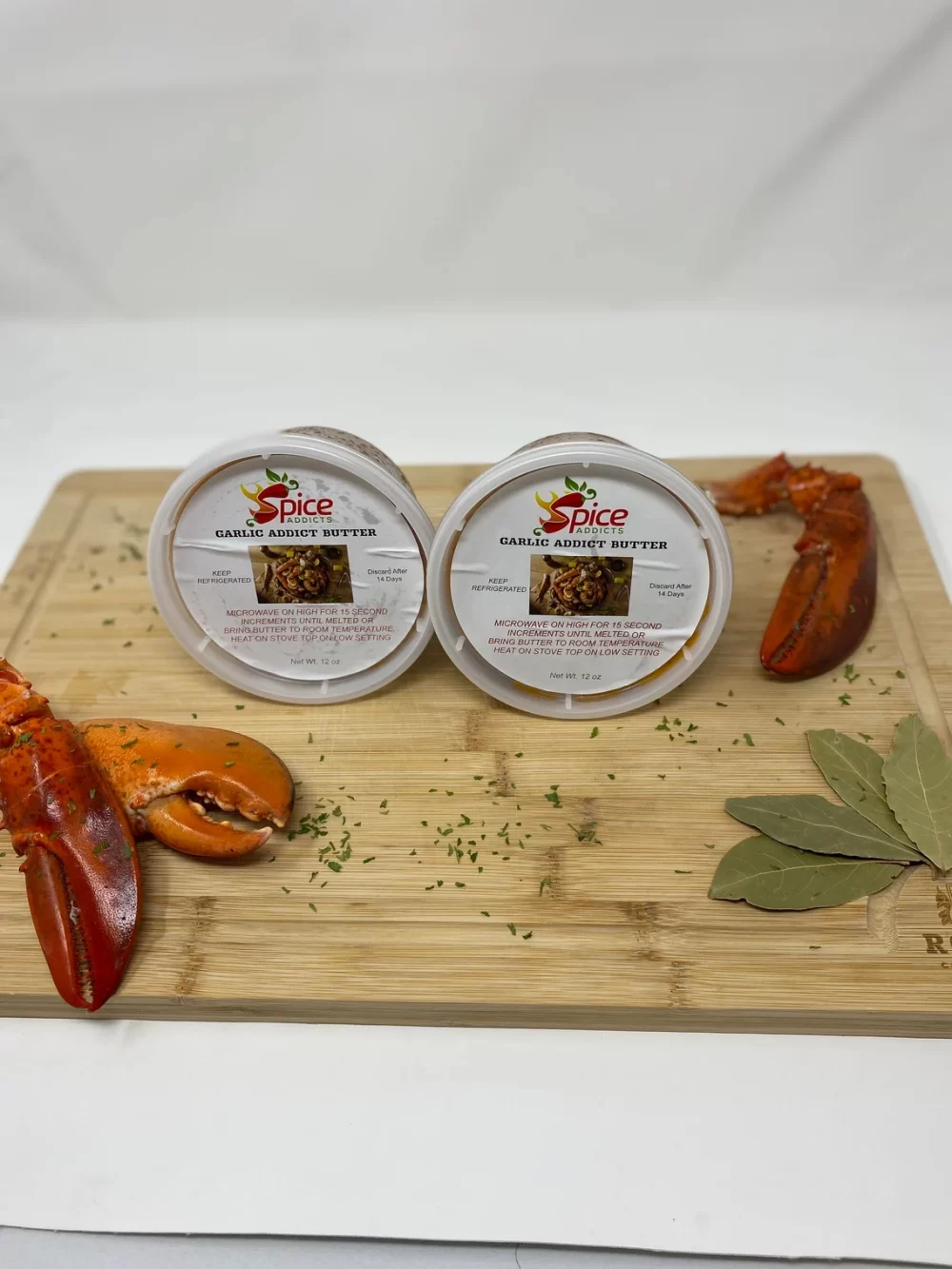 Our Garlic Butter is mouthwatering goodness!!! The garlic butter sauce has a smoky taste with all natural herbs and spices you know and love from Spice Addicts. This 12 oz container is great for individual or group use.